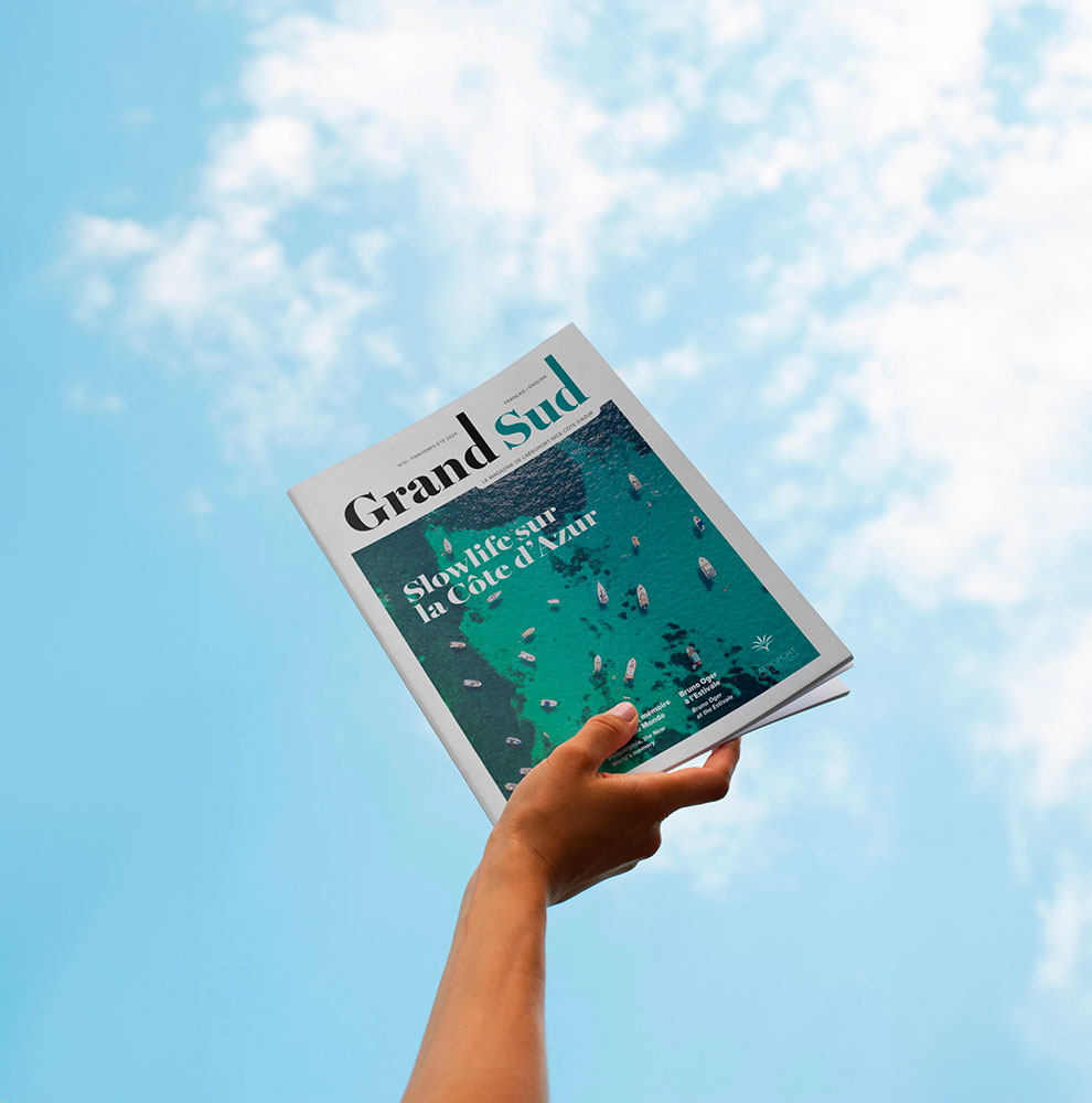 Diffusion : le magazine Grand Sud est édité 4 fois par an à 80 000 exemplaires et distribué dans les terminaux 1 et 2, inspirant les passagers et promouvant les boutiques et services de l’Aéroport Nice Côte d’Azur.