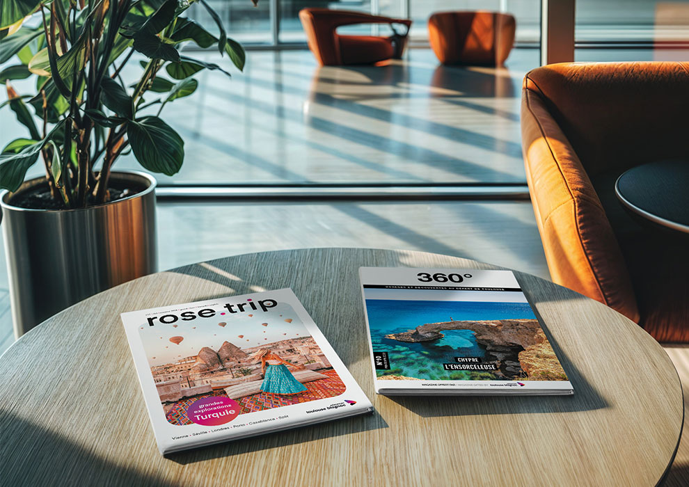 Supports : nous avons conçu une nouvelle maquette graphique et défini une ligne éditoriale fluide. Nous avons produit le contenu éditorial, réalisé des shootings photo, et assuré la traduction pour un magazine bilingue. Nous avons également géré l’impression, la logistique de livraison sur les terminaux 1 et 2, et produit une vidéo de promotion.
