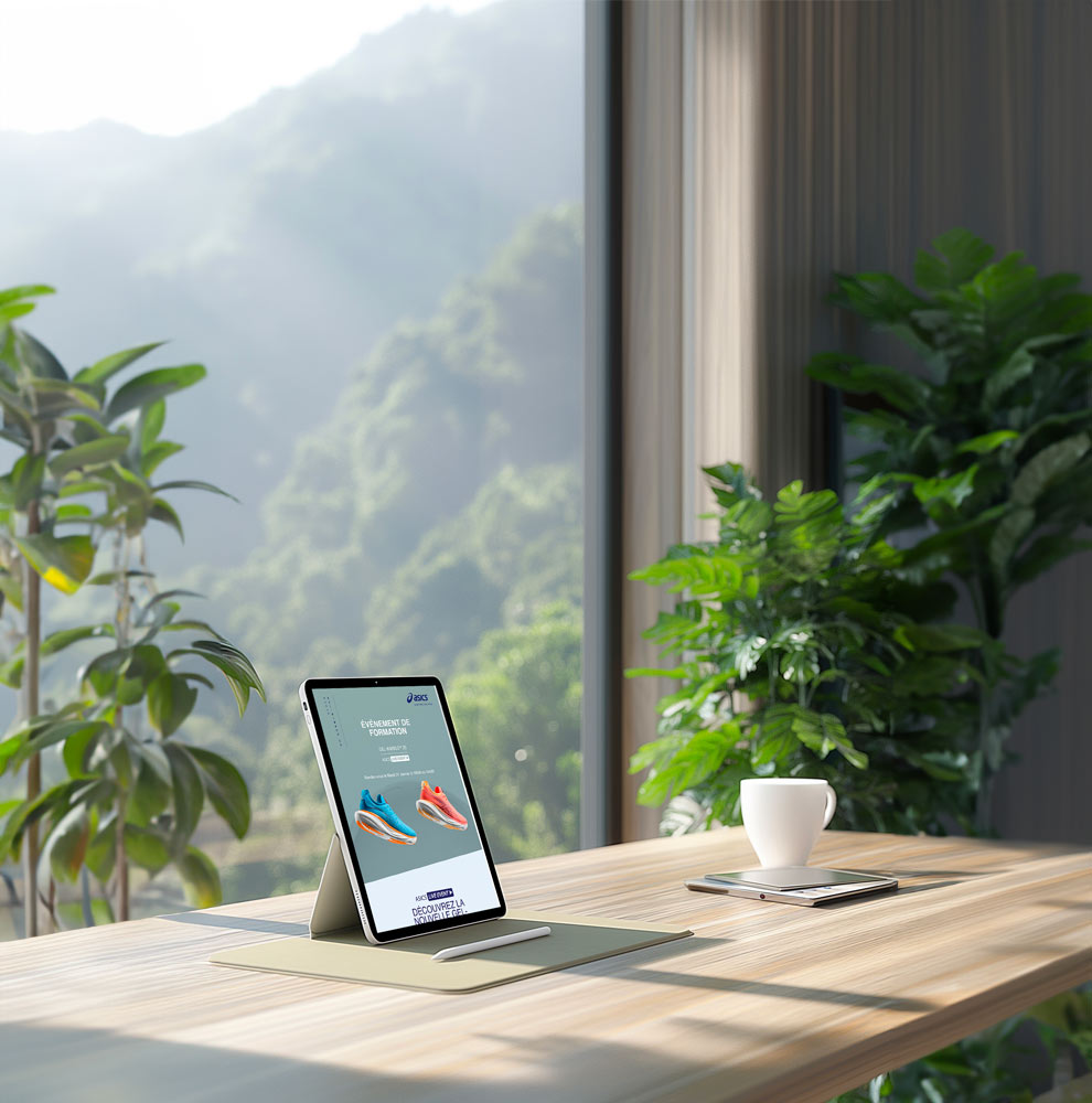 Notre rôle : début 2023, nous avons tourné le ASICS Live Event, un nouveau format lancé pour la sortie de la nouvelle GEL-NIMBUS™ 25, et mis en place des « live broadcasts » pour promouvoir les nouvelles sorties de produits auprès des distributeurs. Nous avons également créé des bannières web diffusées sur des sites revendeurs tels que Decathlon. Début 2024, nous avons développé une application de jeu interactif pour tester les connaissances des super-vendeurs Decathlon, organisée sous forme de questions/réponses ludiques avec des lots et un tirage au sort pour désigner deux grands gagnants.