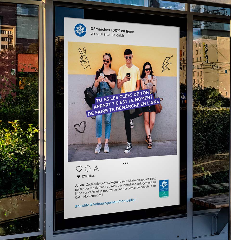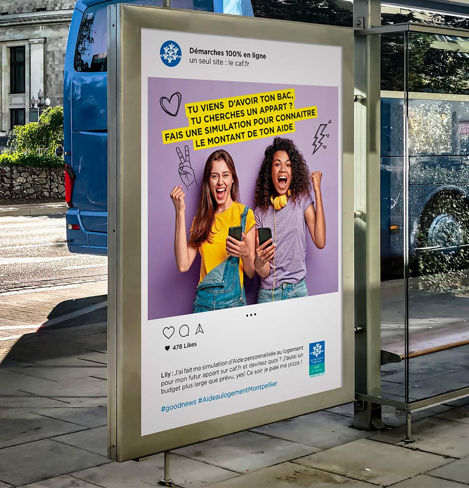 Diffusion : la campagne est diffusée à travers divers canaux pour atteindre les étudiants, informant et engageant cette audience sur les étapes de la demande d’aides au logement.