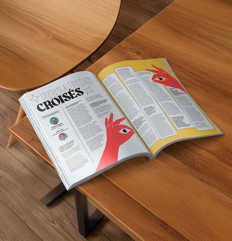 Supports : concept de magazine, ligne éditoriale, interviews, articles, visuels, mise en page, impression, routage.