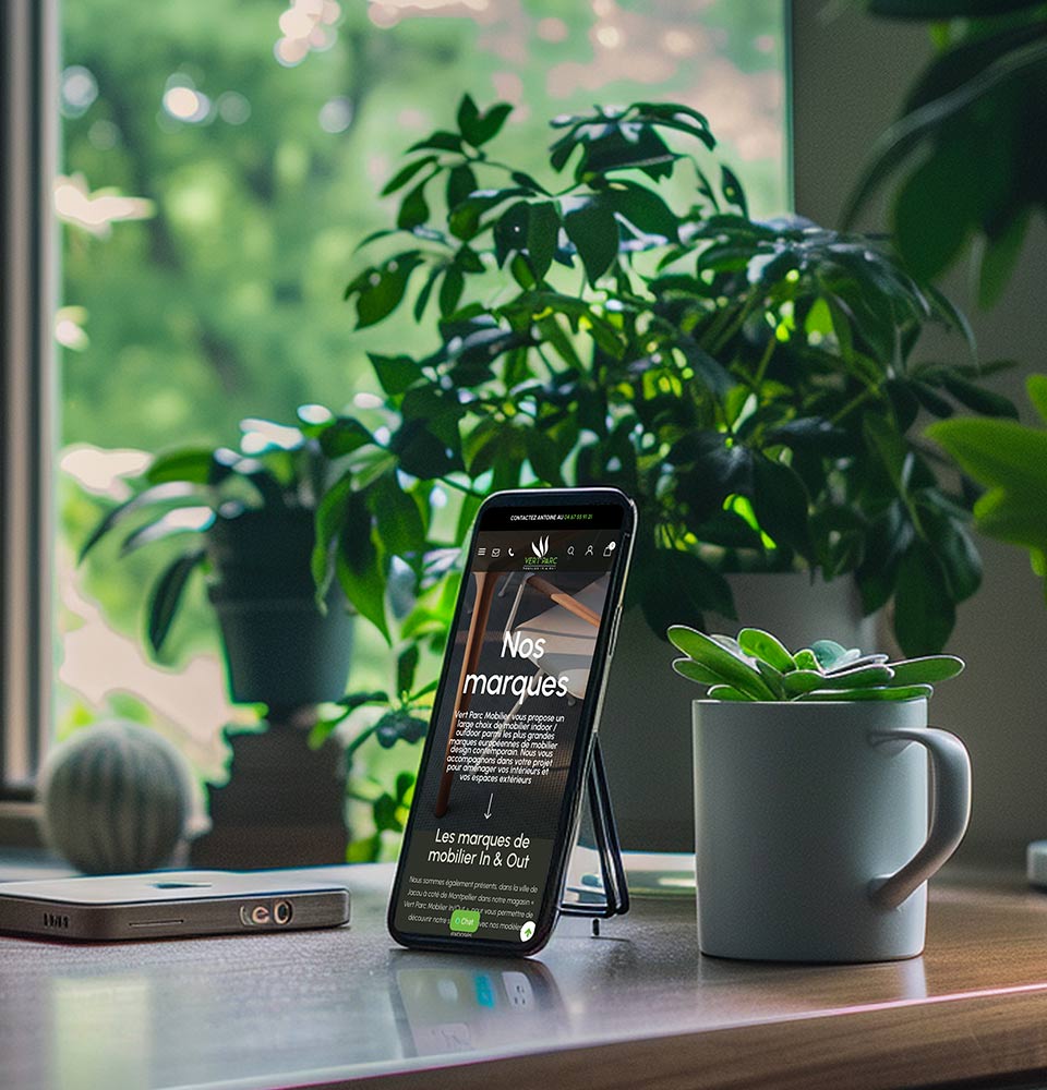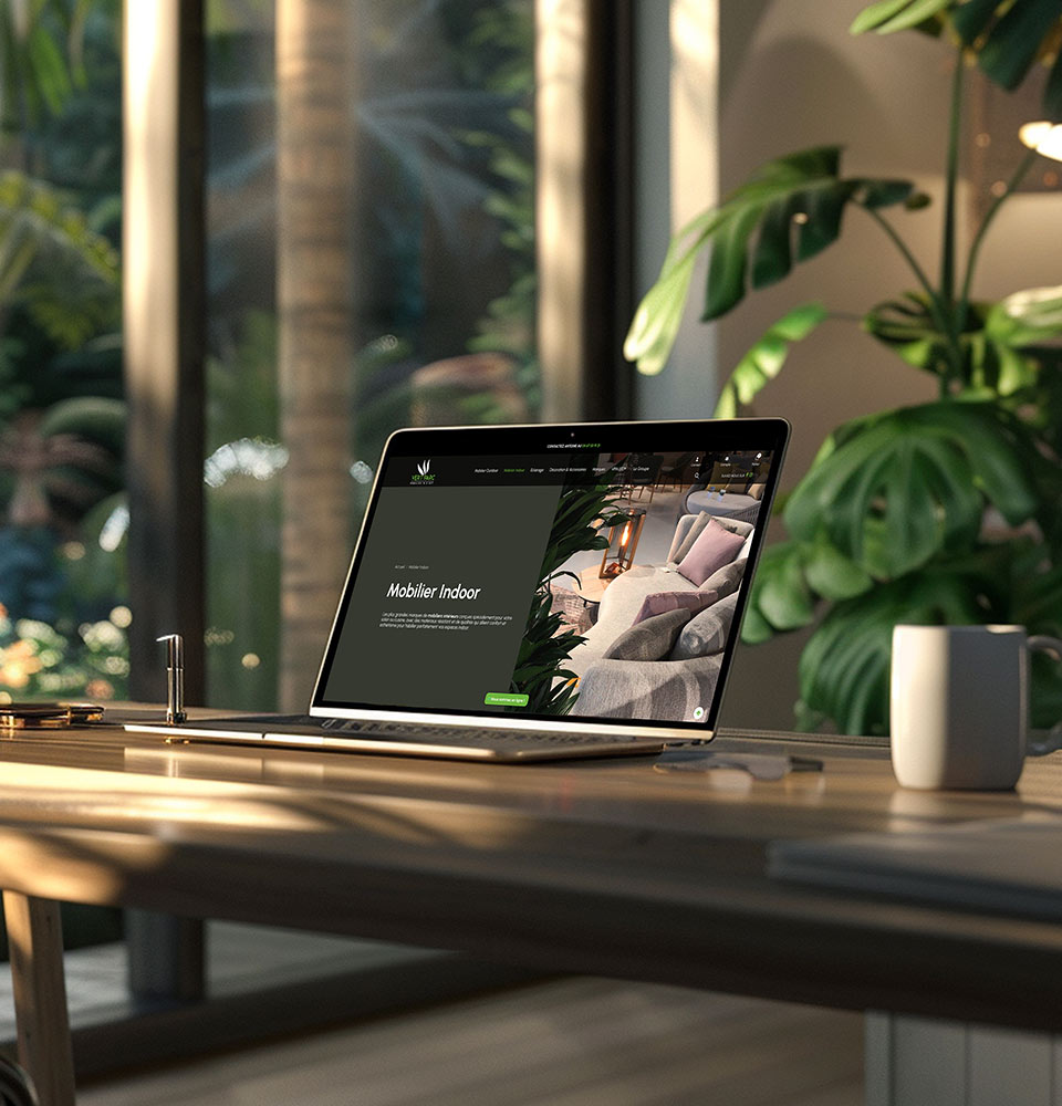 Notre rôle : nous avons créé un wireframe et un design sur mesure pour une plateforme Prestashop, connecté le catalogue via API avec mise à jour des prix automatisée. Nous avons également développé une application métier connectée au site pour l’entretien des espaces verts et lancé une campagne SEA.